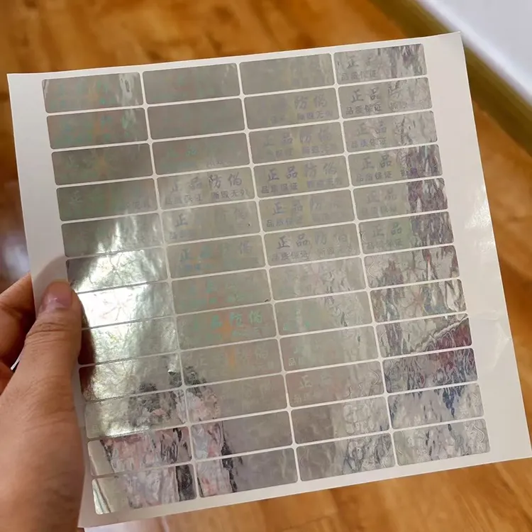 2. Etichetta anti-banco laser laser:Realizzato utilizzando la tecnologia di produzione di piastre per ologrammi a colori laser e tecnologia di replica di fustea. L'etichetta presenta modelli laser unici, che possono essere identificati come autentici o falsi osservando a occhio nudo o usando un dispositivo di ingrandimento per visualizzare le caratteristiche interne incise. I modelli di diversi marchi di etichette anti-contatto laser laser sono diversi , e possono essere personalizzati.