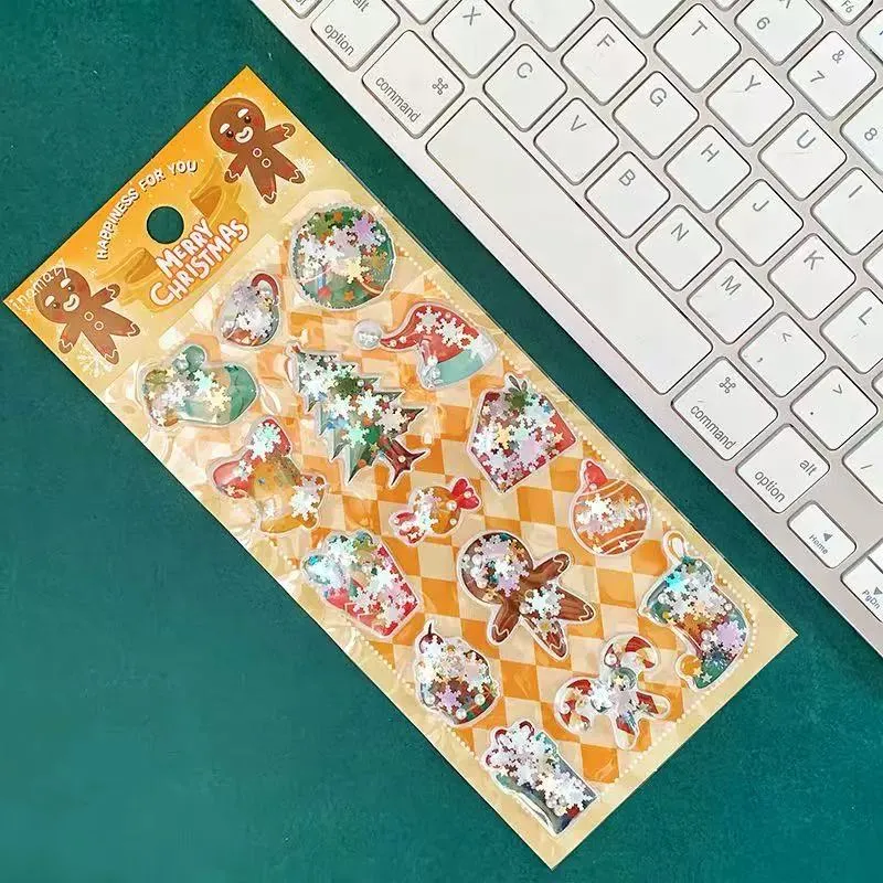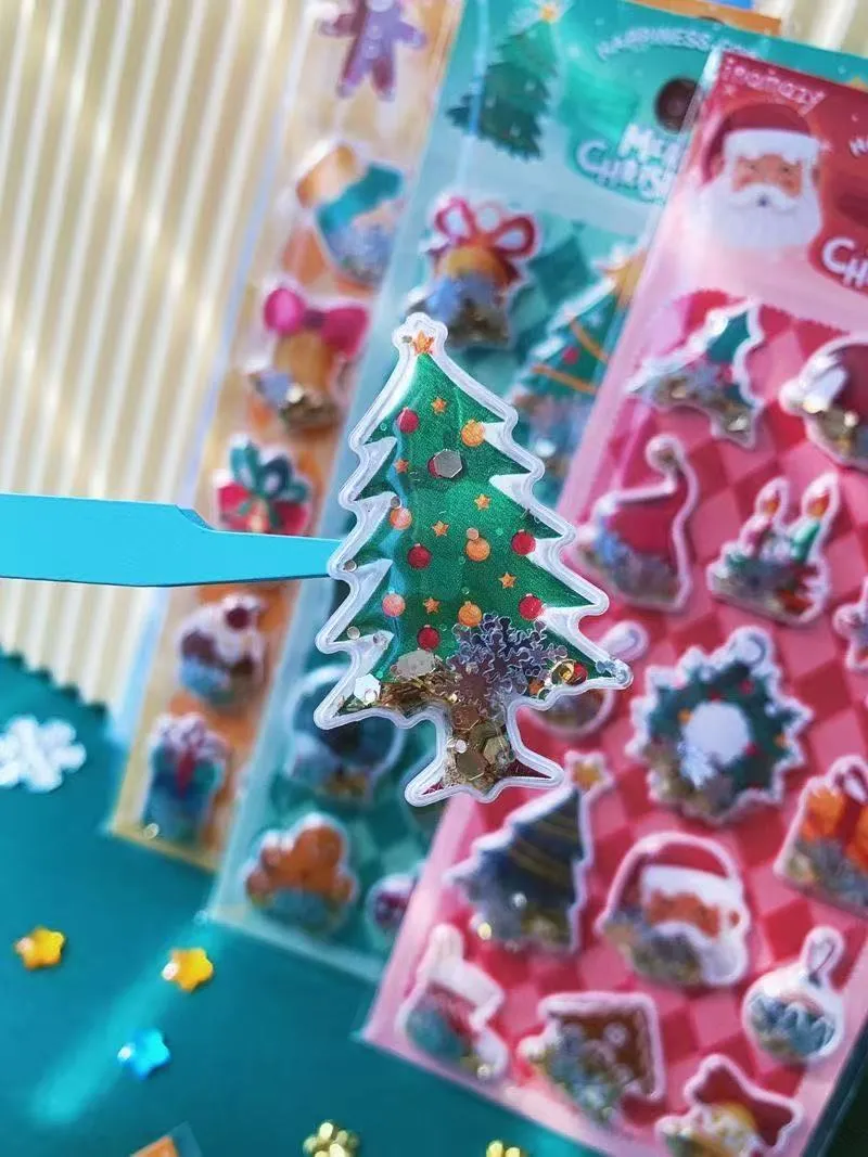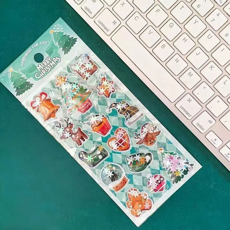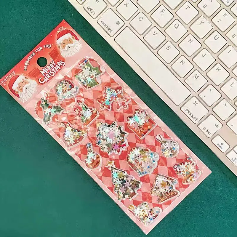 Gli adesivi per shaker di Natale non hanno bisogno di strumenti speciali, questi adesivi sono realizzati per un facile utilizzo. Gli adesivi per shaker di Natale sono "buccia e bastoncini", nessuna abilità necessaria. Sono perfetti per la decorazione rapida e grande. Puoi usarli in molti luoghi. La cosa migliore di questi adesivi è la loro consistenza accidentata e rialzata. Questo design 3D attira l'attenzione più degli adesivi piatti. Sembra anche straordinario e speciale da toccare.