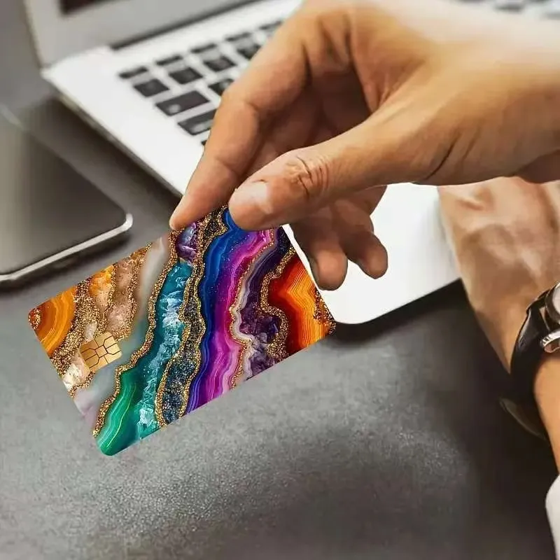 Gli ultimi adesivi skin per carte di credito venduti sono una pellicola superficiale progettata specificamente per le carte di credito. È leggero e ha una forte adesione. Può corrispondere esattamente alle dimensioni della carta di credito. Può sia decorare l'aspetto della carta sia fornire una protezione di base per la carta.