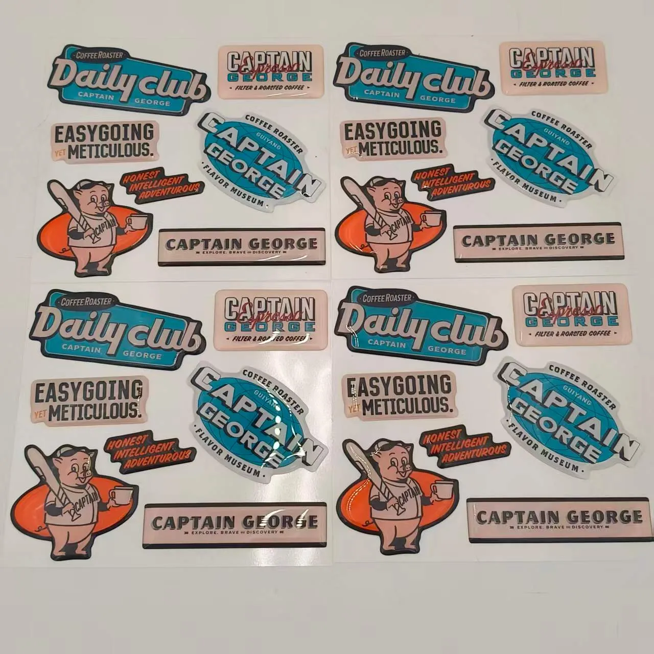 L'adesivo epossidico a cupola, noto anche come decalcomania epossidica personalizzata, è un tipo di prodotto adesivo ad alte prestazioni che combina uno strato di base personalizzato. Adesivo epossidico a cupola solitamente realizzato con materiali come PVC, PET o carta. Ha un rivestimento in resina epossidica trasparente.