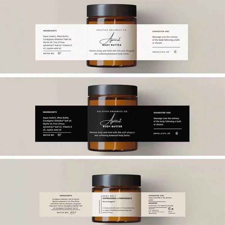 L'etichetta della crema per il viso è un'etichetta appositamente progettata per la crema per il viso ed è una parte indispensabile. L'etichetta della crema per il viso è un modo efficace per i consumatori di conoscere informazioni relative al prodotto (come ingredienti del prodotto, metodi di utilizzo, data di produzione e durata della conservazione, ecc.), Ed è anche un mezzo per i marchi per migliorare la loro immagine di prodotto e rafforzare il riconoscimento del marchio. Le etichette della crema per il viso prodotte da Jojo Pack non solo hanno informazioni relative alla crema per il viso, ma sono anche realizzate con materiali di alta qualità per garantire la durata in ambienti diversi.