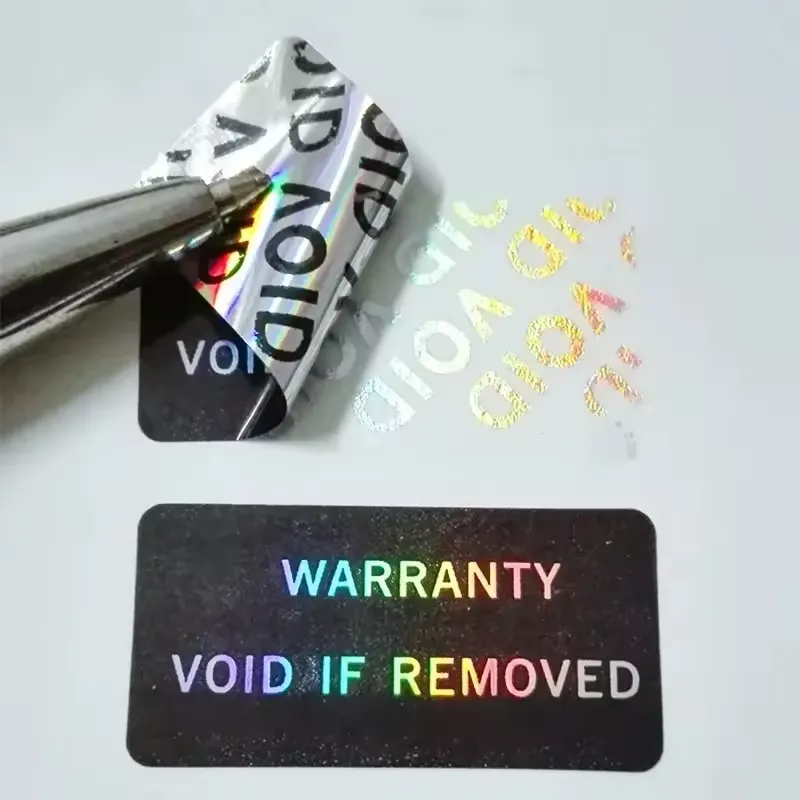 Etichette di sicurezza con ologrammavisualizzare effetti ottici 3D, dinamici o multistrato sotto la luce, difficili da replicare senza attrezzature professionali. La maggior parte sono progettati con proprietà anti-manomissione: si rompono, lasciano residui o mostrano un segno "VOID" quando vengono rimossi. I materiali comuni includono poliestere o pellicola, integrati con fogli olografici o reticoli di diffrazione durante la produzione.