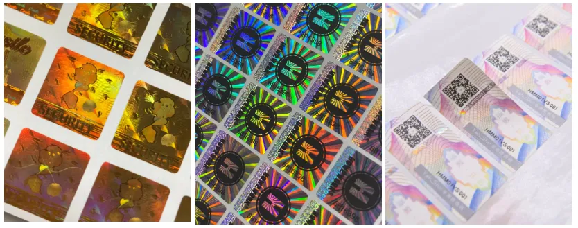 4. Etichette olografiche anticontraffazione: questo tipo di etichetta contiene una superficie riflettente multistrato, può mostrare l'immagine e il modello di cambiamento da diverse angolazioni, difficile da replicare e può essere utilizzato come contrassegno visivo anticontraffazione.
