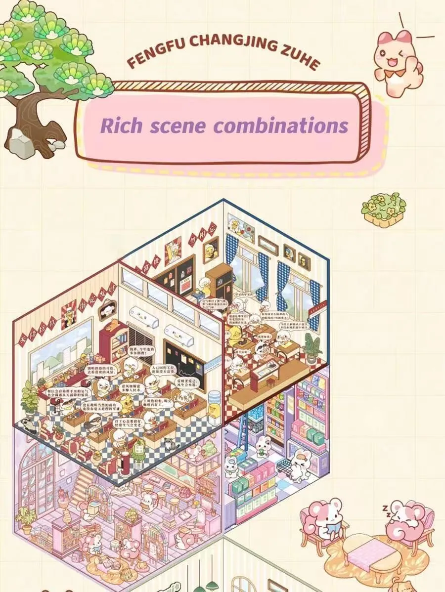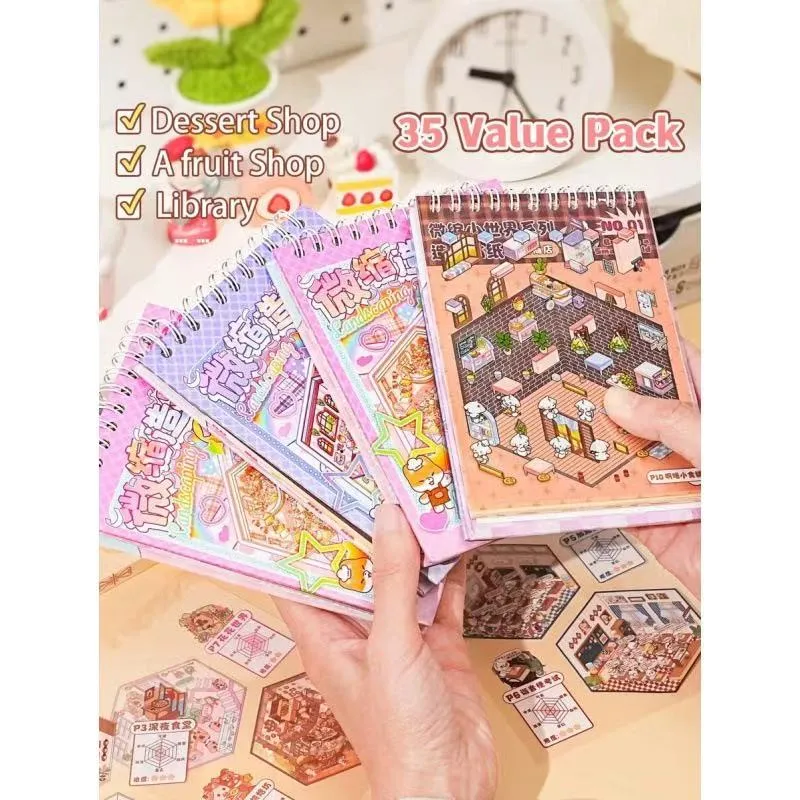 Questo libro di adesivi con scene miniaturizzati contiene 10 scene a tema diverse in ogni volume, che coprono una varietà di stili. Combina funzioni di sollievo dallo stress, intrattenimento, sviluppo intellettuale e decorazione, rendendolo adatto a bambini, adolescenti e giovani adulti. È una scelta eccellente per il tempo libero quotidiano, l'interazione genitore-figlio e come regalo per i festival.