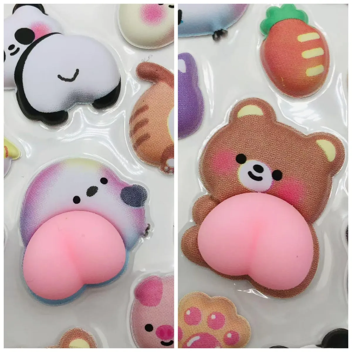 A differenza dei tradizionali giocattoli antistress, questi adesivi antistress a forma di culo sono dotati di adesivo che non lascia residui sul retro, consentendo loro di essere incollati e riutilizzati come normali adesivi. Possono essere attaccati a telefoni, computer, notebook, bottiglie d'acqua, scrivanie o qualsiasi superficie che desideri decorare e fungono sia da giocattolo antistress che da espressione unica di personalità.