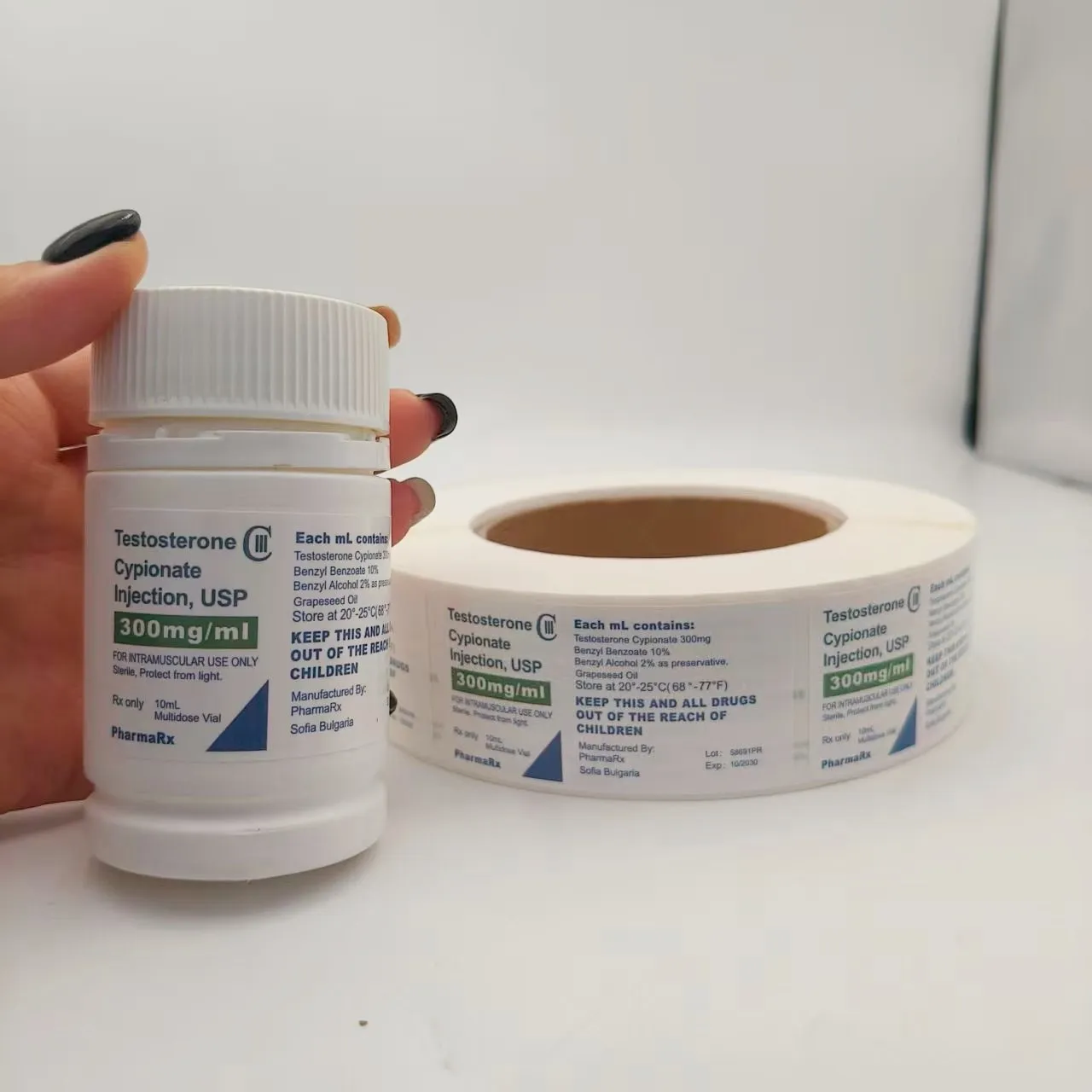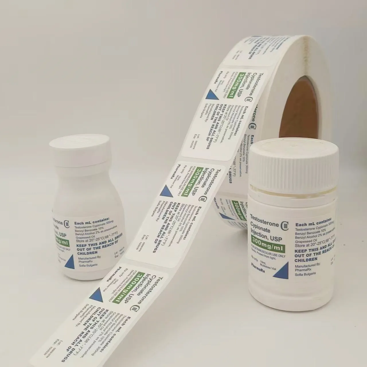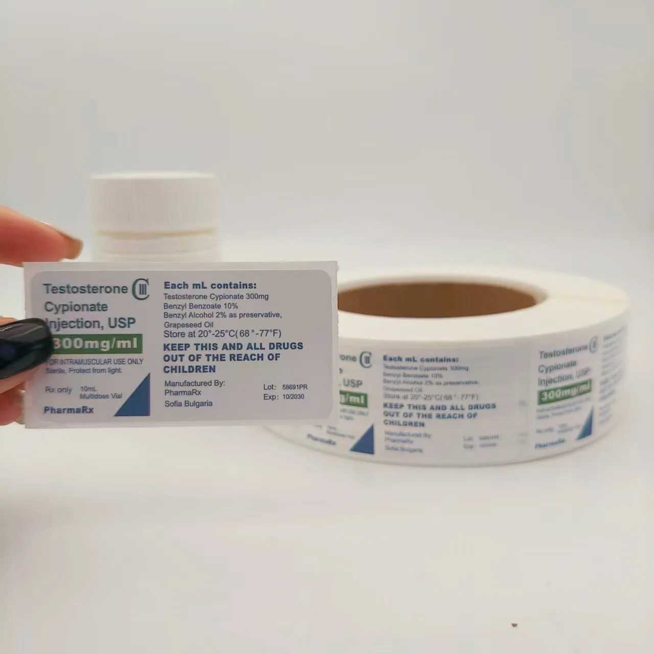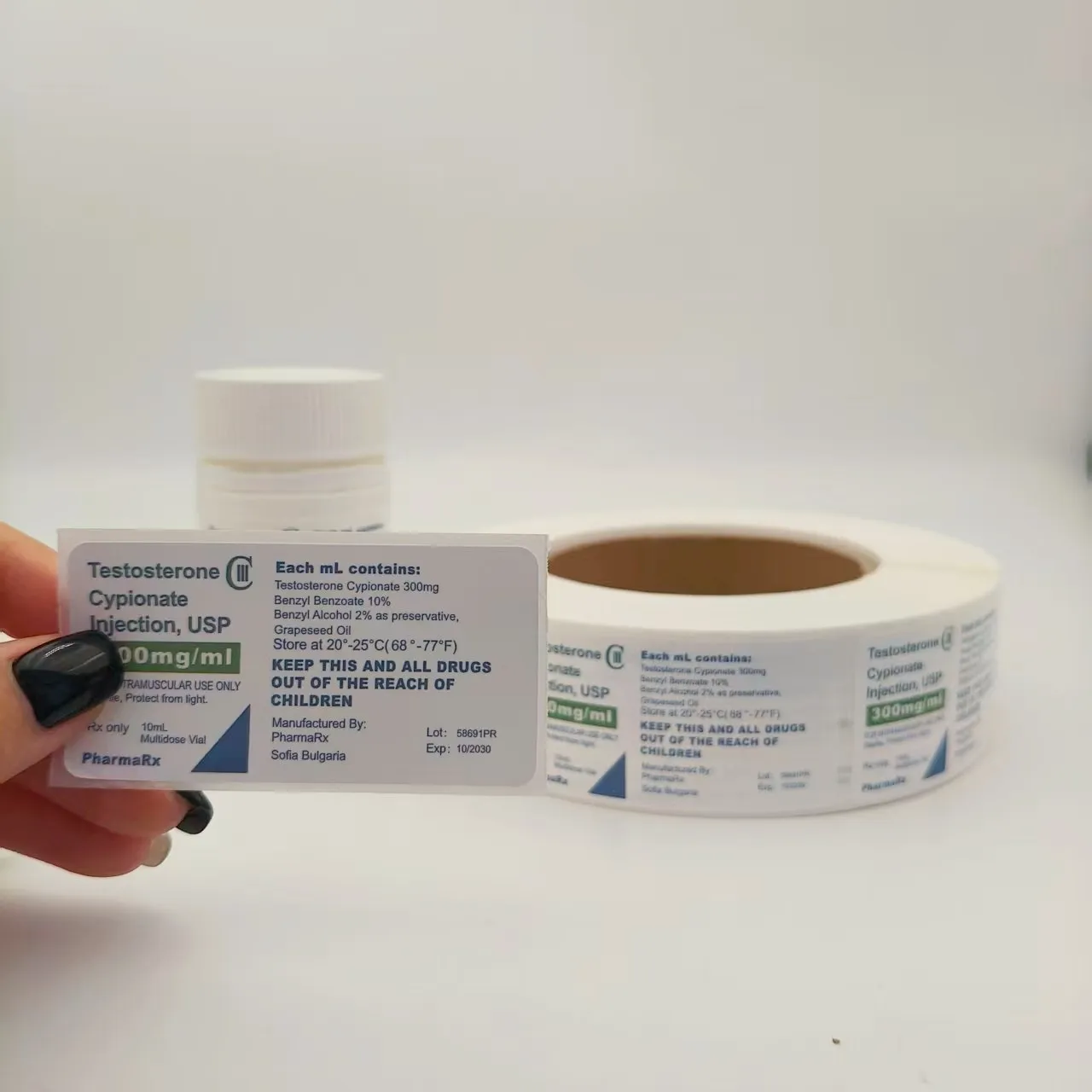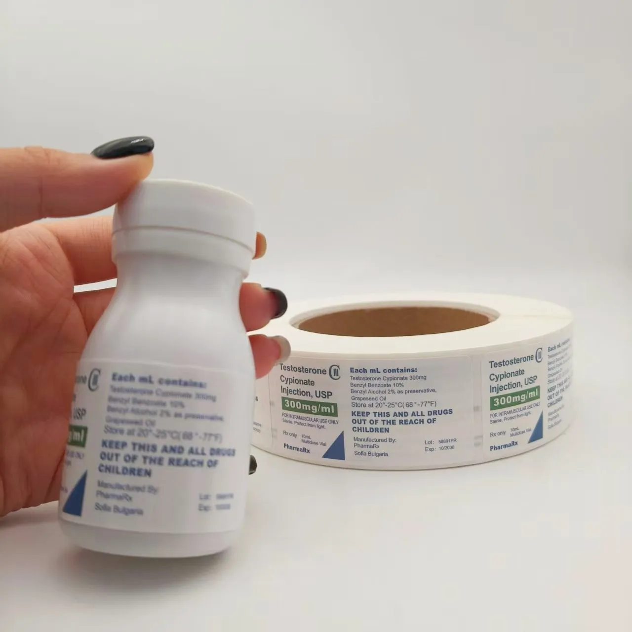 Specifiche del flacone: corrispondere al diametro, all'altezza e alla forma (rotondo, quadrato, ecc.) del flacone del medicinale per garantire che l'etichetta possa aderire completamente senza superare la bottiglia o coprire l'imboccatura e il fondo della bottiglia.
