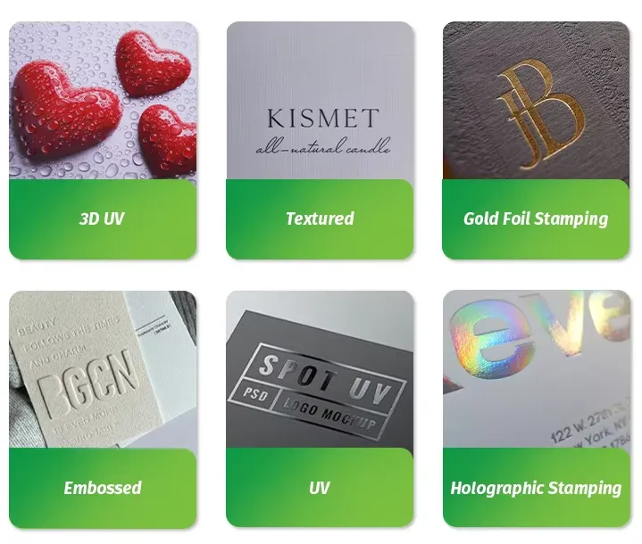 Goffratura: crea motivi o testi tridimensionali in rilievo sulle etichette delle candele profumate. Aggiunge consistenza e un elemento tattile, rendendo le etichette delle candele profumate più piacevoli al tatto. La goffratura funziona bene con loghi o motivi decorativi, migliorando la sensazione premium.