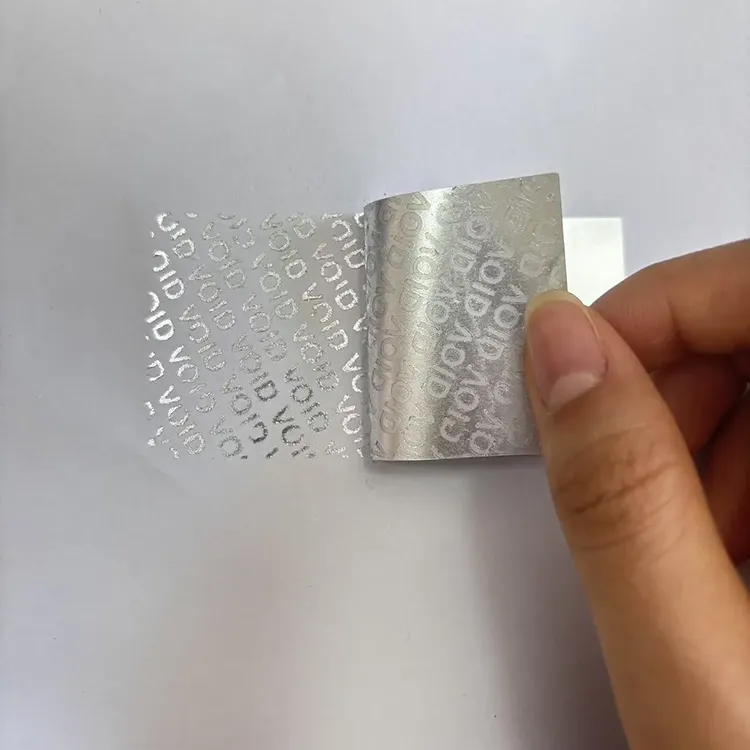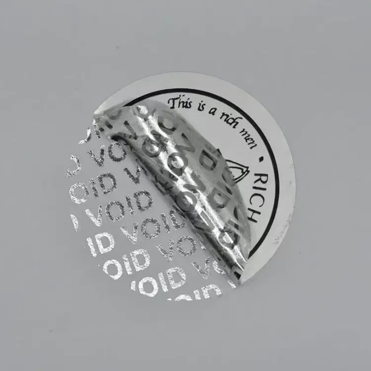 L'etichetta anti-contatto del vuoto è costituita da uno strato superficiale, uno strato adesivo intermedio e uno strato di base. Lo strato superficiale è realizzato con materiali resistenti ai graffi e resistenti all'usura e può essere stampato con il logo dell'azienda e altri contenuti in base alle esigenze del cliente. Lo strato di adesivo intermedio è uno speciale adesivo che, quando l'etichetta viene staccata, parte dello strato adesivo rimarrà sulla superficie dell'oggetto attaccato, rivelando il modello o il testo "vuoto". Lo strato di base serve a proteggere lo strato adesivo e può essere facilmente rimosso prima dell'etichettatura. L'etichetta può resistere a determinate variazioni di temperatura e umidità e attrito quotidiano, garantendo che l'effetto anti-contatto non sia innescato dal normale uso.